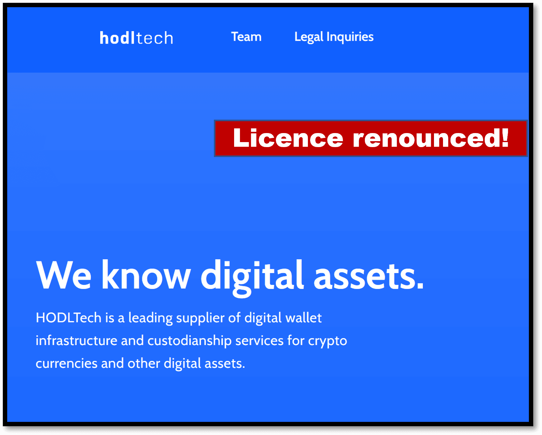 The Estonian Financial Intelligence Unit (FIU) announced that during a supervision systematic weaknesses in the activities of Hodltech OÜ d/b/a HODLtech (www.hodltech.eu) have been exposed. Consequently, the company’s crypto license would have been declared invalid after the proceedings. However, Hodltech OÜ renounced its activity license to avoid revocation via FIU. The company did not fulfill the obligation of notification about the suspicion of money laundering and terrorist financing.