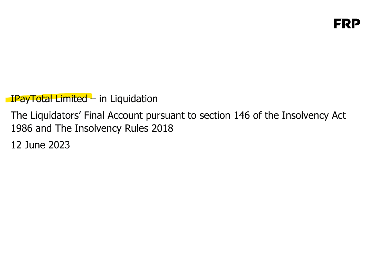 On November 19, 2023, the probably last filings for the bankrupt iPayTotal Ltd were made at the UK Companies House. The liquidator Arvindar Jit Singh reported the end of the liquidation. As one of the many high-risk payment processors of the Indian Ruchi Rathor, the insolvency deprived merchants of many millions. The liquidator reports “only” around £1.9 million unsecured claims that were not paid. But insiders say it was much more. The company is dissolved!
