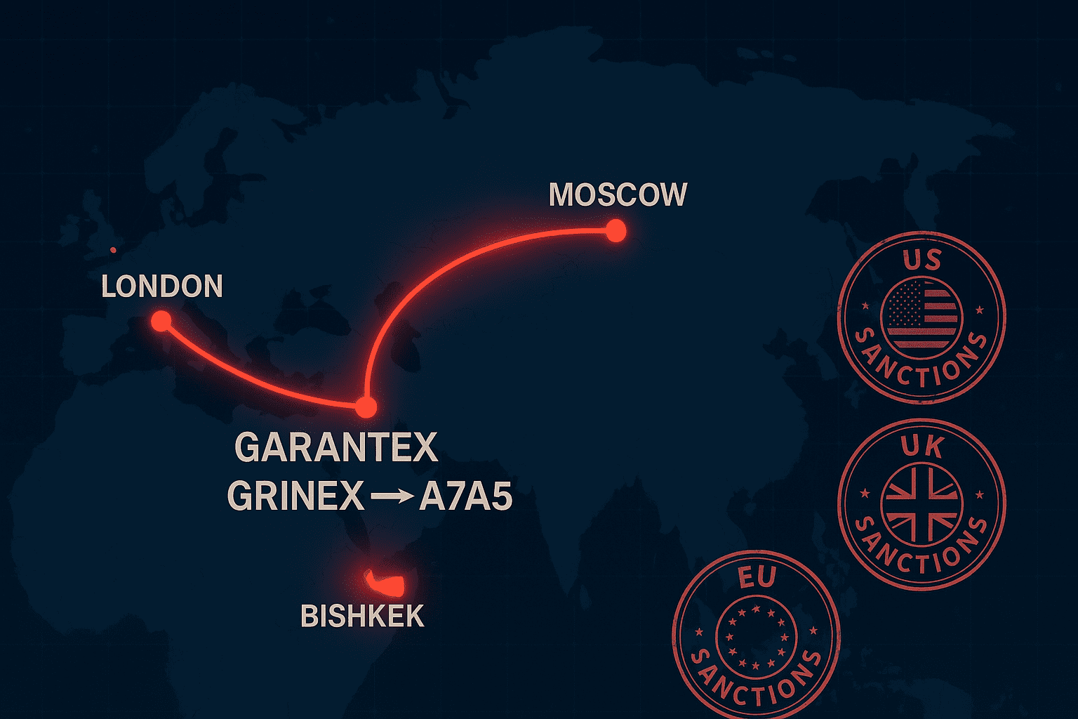 The U.S. (Aug 14, 2025) and the U.K. (Aug 20, 2025) have escalated coordinated sanctions against Russia’s Garantex network — now operating through its successor Grinex and the ruble-pegged stablecoin A7A5 — accusing it of laundering ransomware proceeds and enabling cross-border payments to blunt Western restrictions. This is not a side-show: it’s the core plumbing of a Kremlin-aligned shadow rails strategy that moves billions and targets weak links in Central Asia.