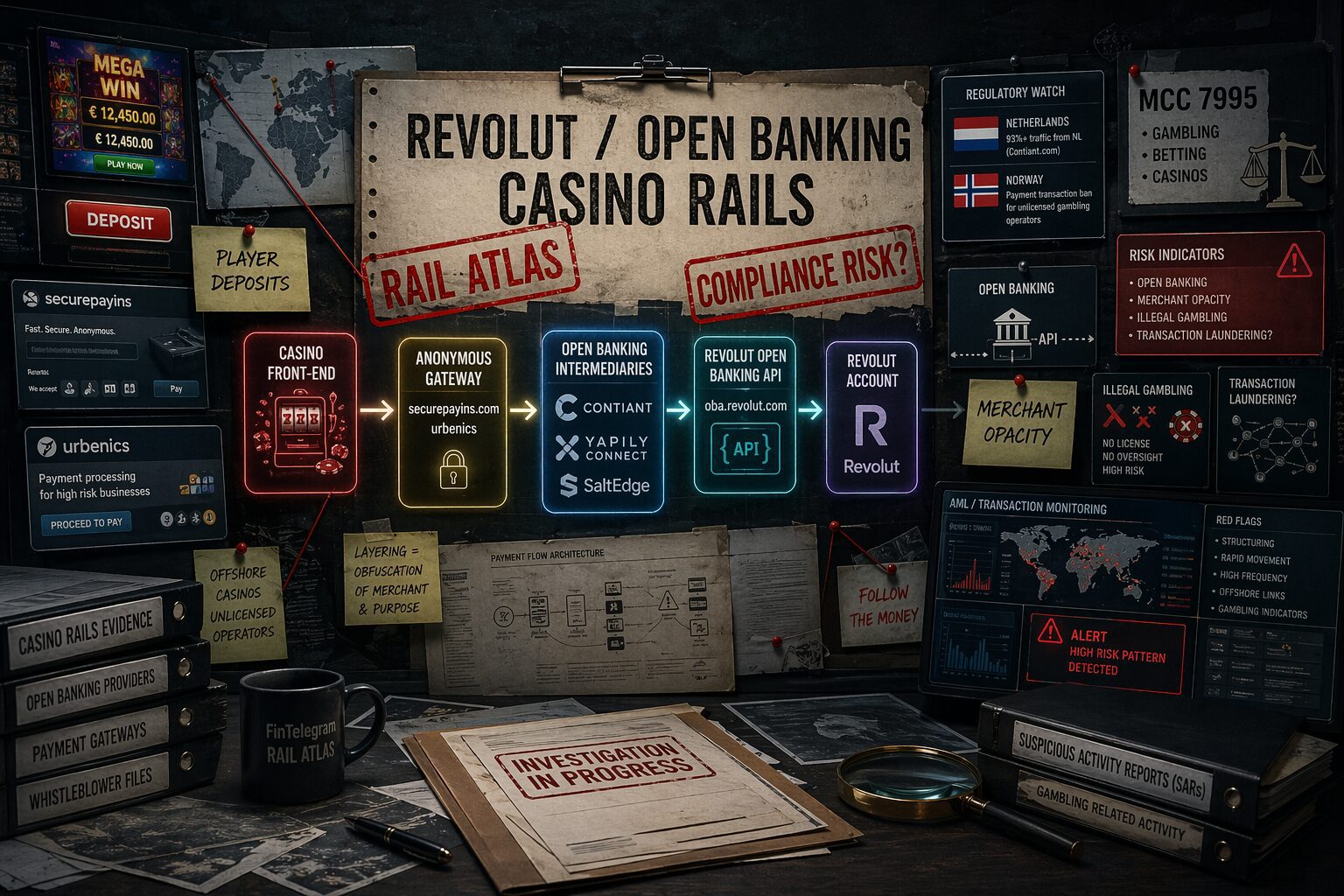 The key compliance issue is not simply that a Revolut customer may gamble. The issue is whether repeated, structured, high-volume flows through Revolut-linked open-banking infrastructure indicate a recognisable casino payment corridor that should trigger enhanced monitoring, blocking, reporting, or regulatory review.