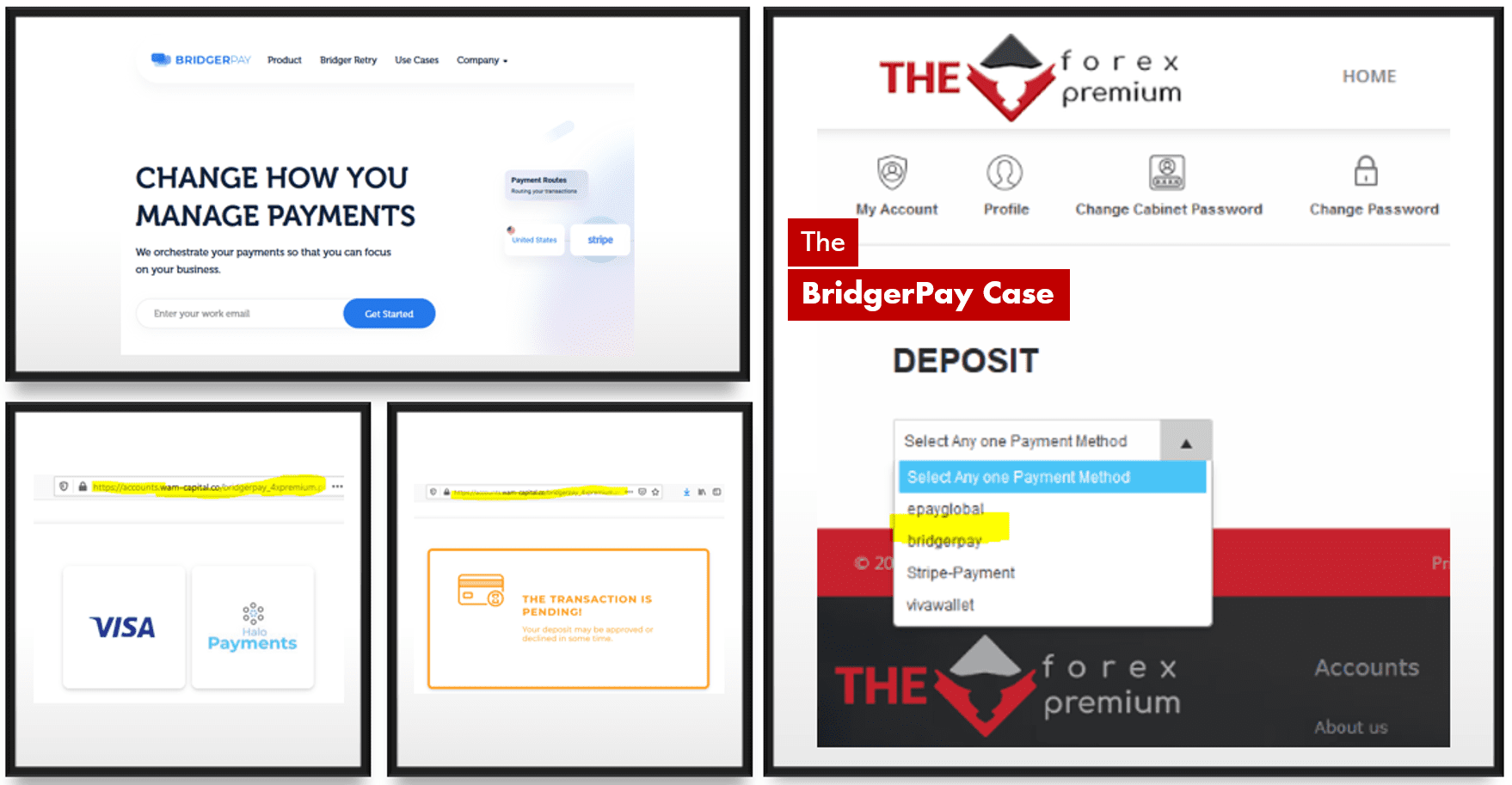 Today, 22 Feb 2021, the Spanish CNMV issued a total of ten investor warnings against various financial services providers. Seven of them were FX brokers and in two of them, we discovered BridgerPay as a payment facilitator – at The Forex Premium and WAM Capital. We have not yet analyzed the warnings issued by the other regulators today. Evidently, BridgerPay has accepted the operators of The Forex Premium and WAM Capital as clients for its “intelligent” payment gateway. The two scams belong together as can be easily seen from the payment screenshots (above). But of course, an “AI” payment gateway does not have to be able to recognize this, does it?