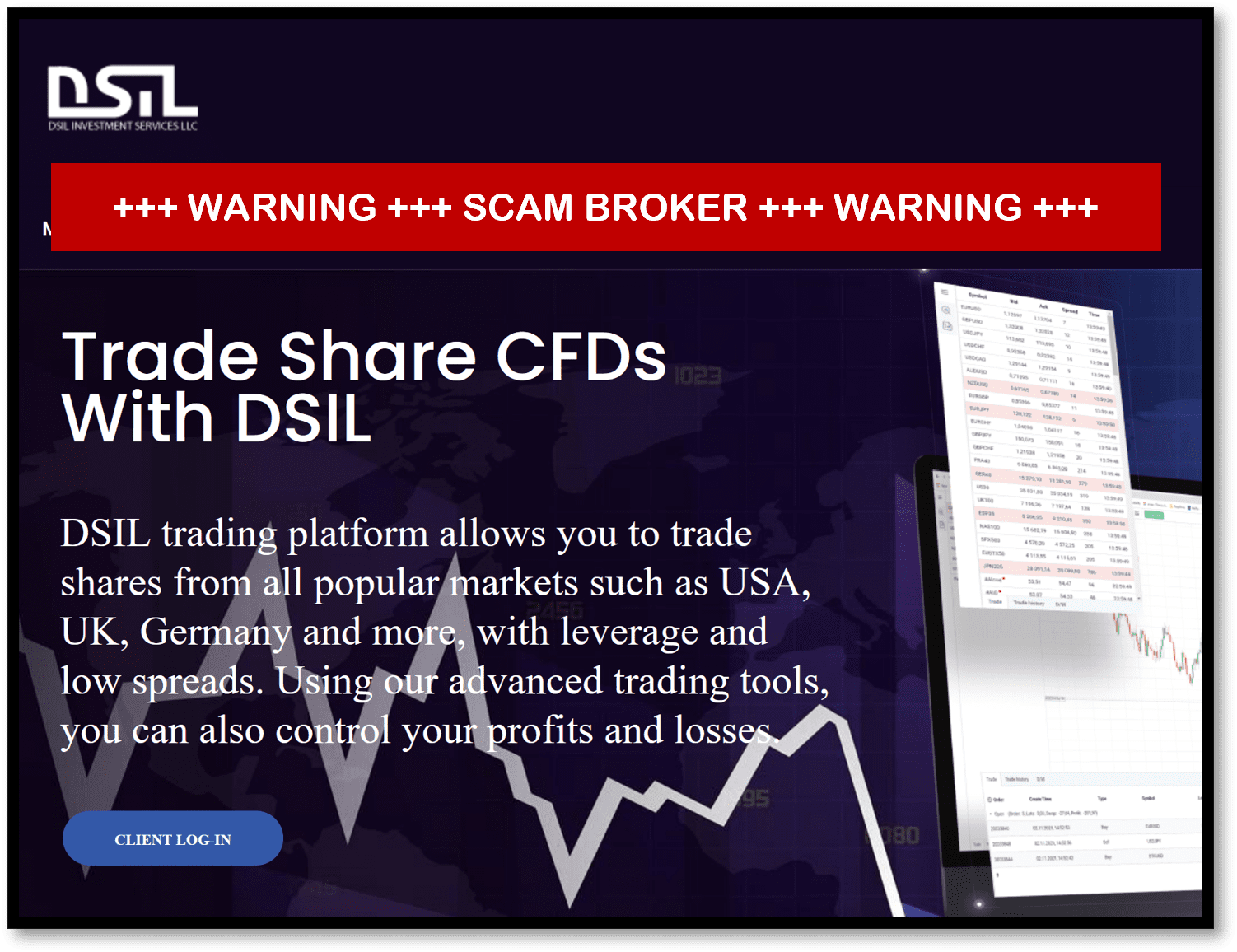 The Austrian Financial Market Authority (FMA) has warned against the DSIL brokerage scheme allegedly operated by DSIL Investment Services LLC. Allegedly, the broker would have offices in New York and London. The website states that the broker would be regulated by the SEC and would be a member of FINRA. This is, of course, bullshit to mislead investors. Stay far away and protect your financial health.