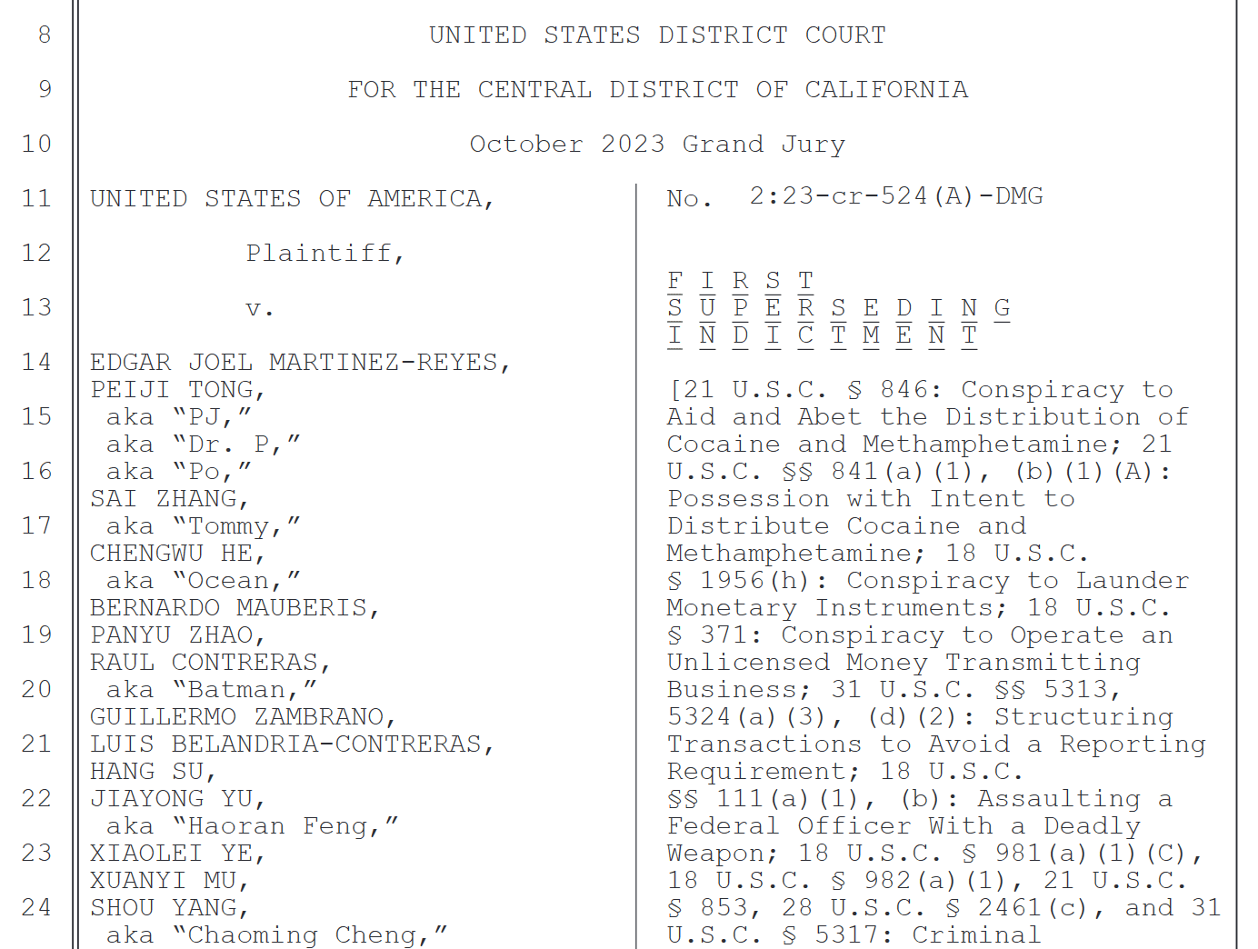 A recent investigation by the U.S. Department of Justice (DOJ) has exposed a sophisticated money laundering scheme involving the Sinaloa Cartel and Chinese underground banking networks. This extensive operation, known as “Operation Fortune Runner,” highlights the intricate methods used to launder drug trafficking proceeds. The DOJ’s 10-count superseding indictment charges 24 individuals associated with the Sinaloa Cartel and Chinese underground banking groups.