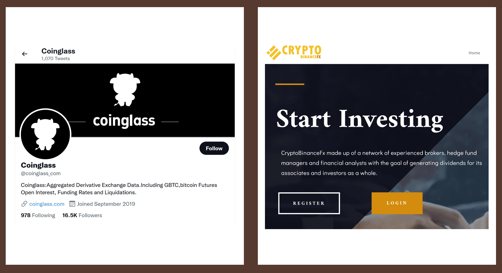 Coinglass (formerly ByBt.com) is a crypto futures trading & information platform allegedly operated by Coinglass Limited. We have not been able to find this company even though it offers apps on Apple and Google. We suspect that Coinglass is an unregulated Asian scheme that appears to act as an Introducing Broker (IB) and/or affiliate for other crypto exchanges like Binance.