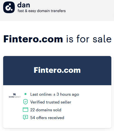 We have recently made an appeal to send us information about the operators of the broker scam Fintero (www.fintero.com). Within a few hours, we received the first reports for which we would like to thank you. First of all, we were informed that Fintero also uses the domain www.fintero.org and is therefore active. Furthermore, we were informed that the Russian Ulia Plotnikova registered the domain. And finally, we received the information that the domain www.fintero.com is offered for sale on Dan.com via Spanish domain broker NameAgency.