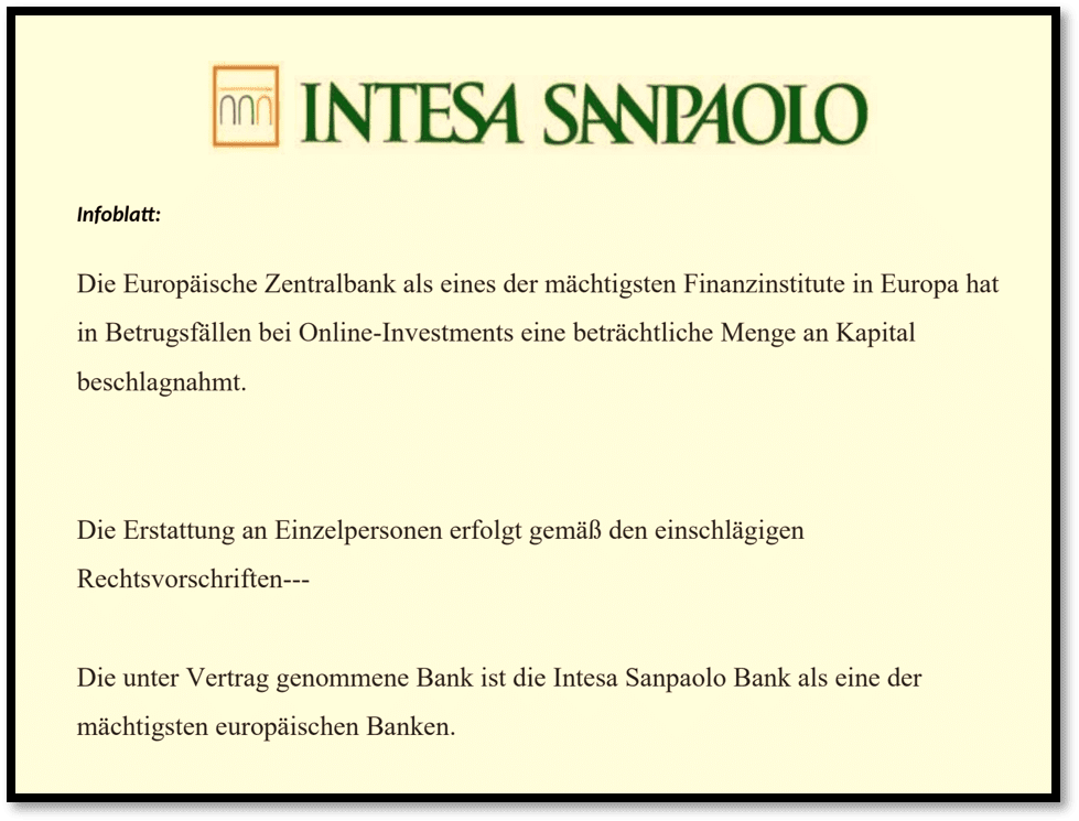 Whistleblowers tell us that they are receiving emails sent on behalf of SanPaolo bank. These emails claim that SanPaolo bank has been instructed by the European Central Bank (ECB) to make repayments to victims of scams. You are one of the victims for whom money is to be frozen and repaid. To receive the money, one should first upload their ID and bank statements or a description of the fraud. Please do not fall for it. These are scammers who want to steal your data and money. Neither the ECB nor banks do not operate a fund recovery business.