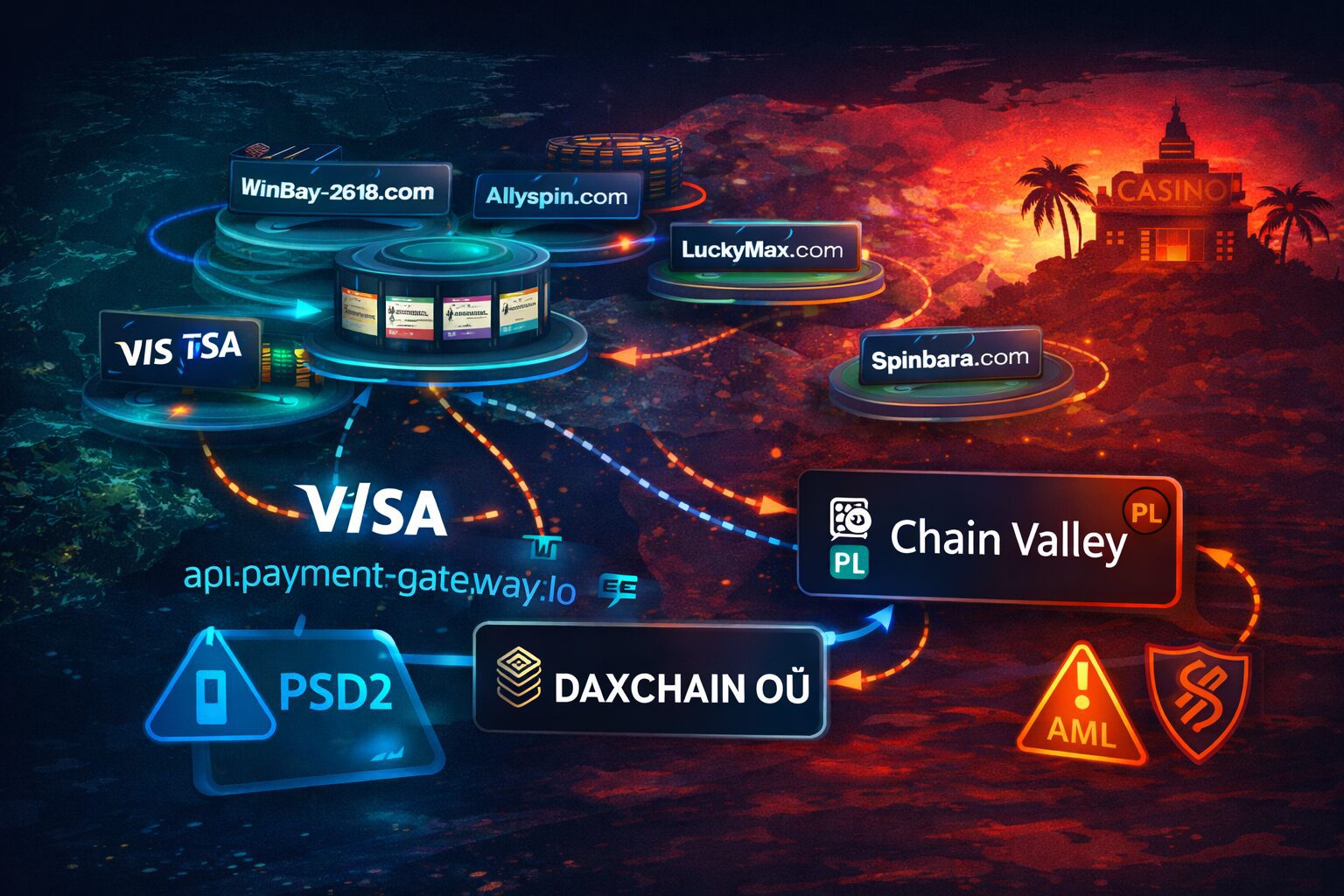 FinTelegram’s Rail Atlas reviews of Stellar-linked offshore casinos show a repeatable payments pattern: players are routed through “open banking” and wallet rails that do not pay the casino directly, but instead pay VASP-registered intermediaries—notably DAXCHAIN (Estonia) and ChainValley (Poland)—that appear to function as fiat collection points. This is not an edge case. It looks like a scalable operating model designed to keep the casino out of the payment line-of-fire.